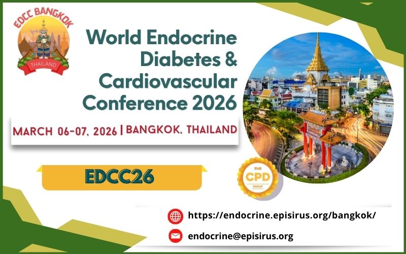 Episirus Scientifica welcomes you to attend World Endocrine, Diabetes & Cardiovascular Conference 2026 (EDCC26) to be held during March 06-07, 2026, in Bangkok, Thailand around the theme “Innovation in Metabolism: Novel Therapeutics & Tech for Endocrine Disorders”. This international meet (EDCC26) anticipates hundreds of participants including keynote speakers, Oral presentations by renowned speakers and poster presenters besides delegates around the world. This conference is perhaps a giant event that creates an ideal platform to share expertise addressing current advancements involved in Endocrine, Diabetes & Cardiovascular Health. It will be a wonderful opportunity for all the delegates as it provides an international networking opportunity to collaborate with the world-class Endocrinology, Obesity and Medical Associations.